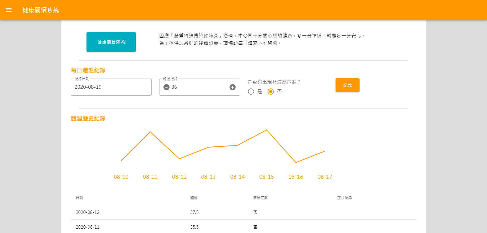 管理人員可依每日員工的體溫紀錄,可迅速掌控有異狀員工。