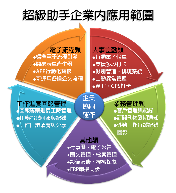 當有錢的大企業走向全自動化無人工廠之際,中小企業主該如何因應降低工資不斷上漲,人才不斷流動的的衝擊,是一大重要課題。安卓資訊『Super Helper 超級助手』的出現,就是要幫您解決公司內部每天需要主管及每位同仁不斷費神追蹤的事情。用心傾聽每一個需求,解決每一個問題,滿足客戶的期待是我們最大的目標。最終希望客戶透過使用我們的產品,可以得到最大的經濟效益。